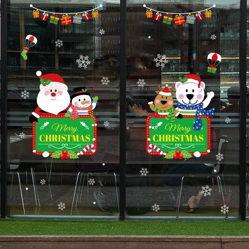Share on WhatsApp 2X Christmas Sticker Xmas Window Door Santa Claus Home Glass Decals Party
