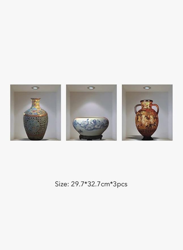 Share on WhatsApp pack of 3 3D Simulation Ceramic Vase Wall Stickers Living Room Bedroom Decoration Sticker PVC Material Self-adhesive Environmental Protection Removable Decor Wallpaper