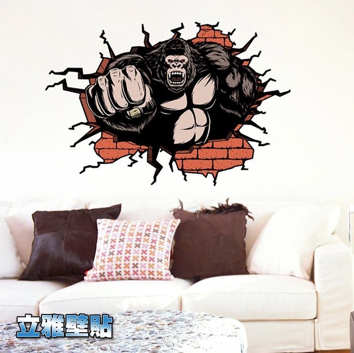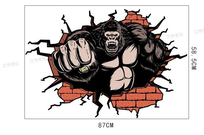 3D Wall Broken Orangutan Background Wall Decoration Removable Wall Stickers for Kids Rooms Bedroom Bathroom Living Room Kitchen