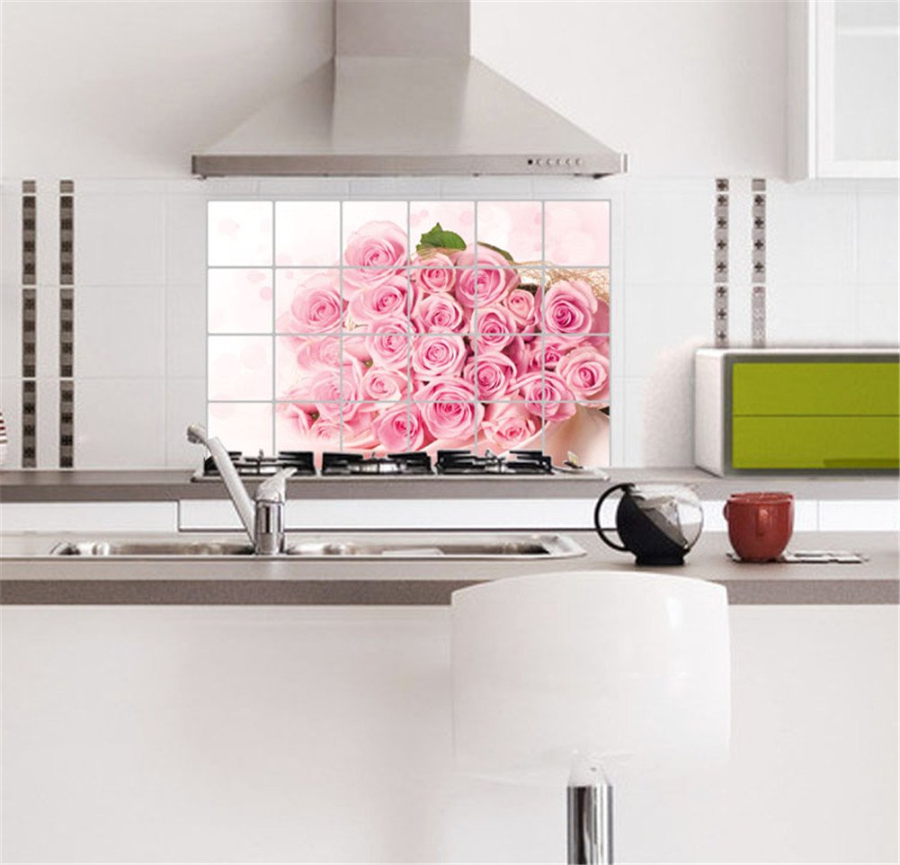 ACEFAST INC 6090CM Kitchen Oil Proof Waterproof Decal Wall Stickers Pink Rose Decal(A7)