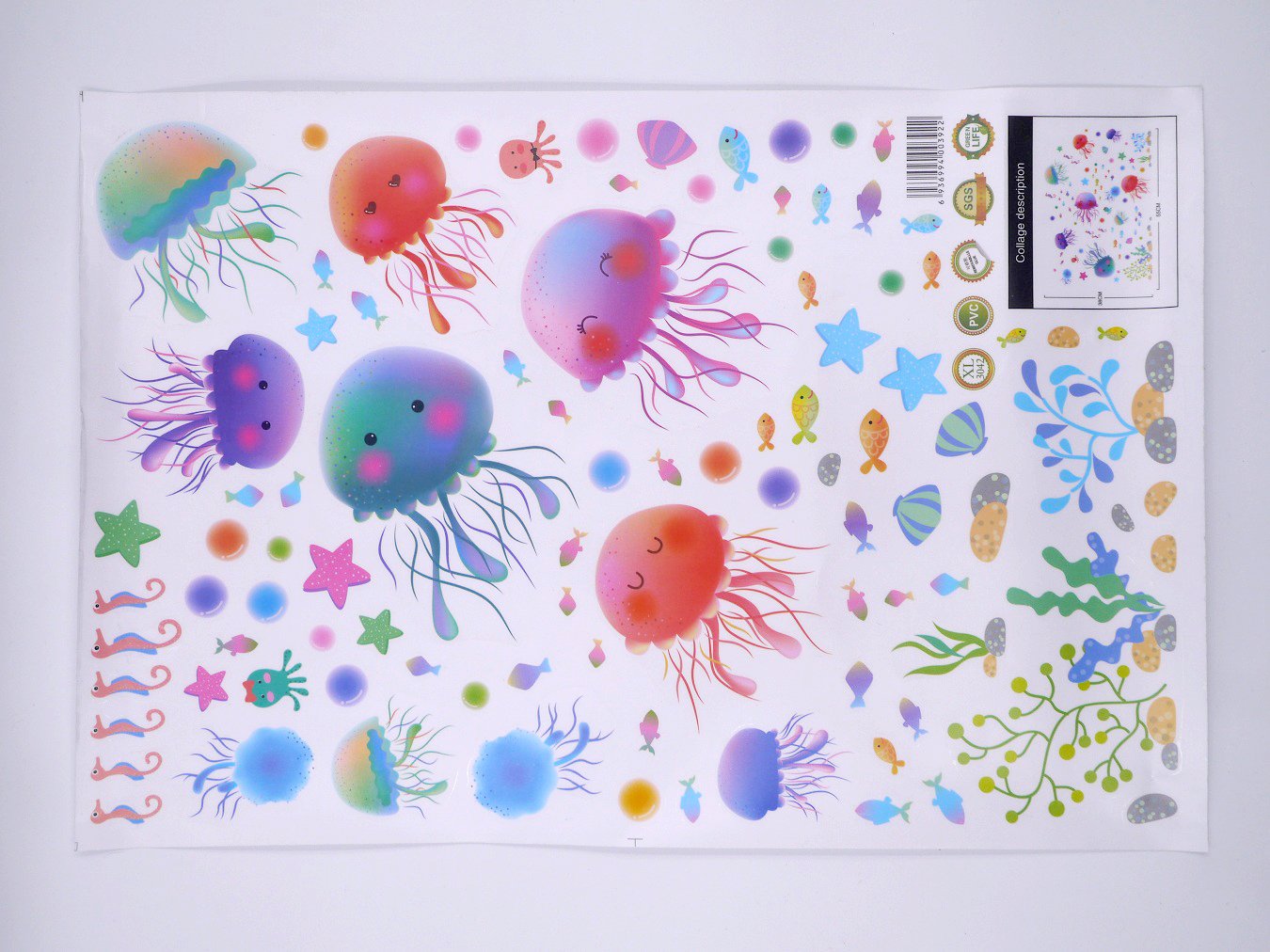 Adam Victor Removable Creative 3D Fun Fish Jellyfish Underwater World Wall Decals Kids Room Wall Decorations Art Décor Stickers Nursery Décor 3D DIY PVC Art Decal Bedroom Bathroom Sticker Xl3042 Size:18x12