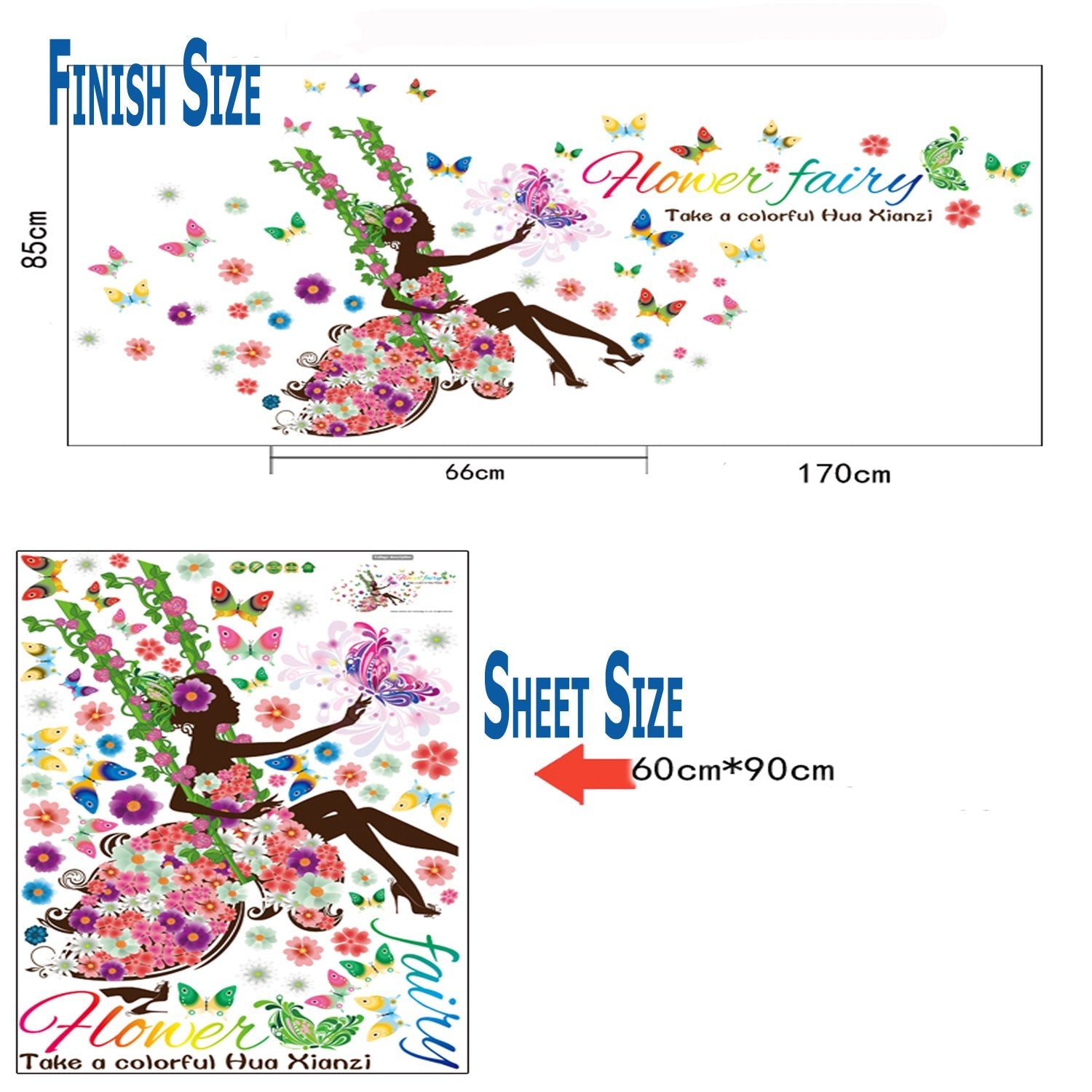 Afra Design ' Flower Fairy ' Wall Sticker (PVC Vinyl, Size 3XL, Multicolour)