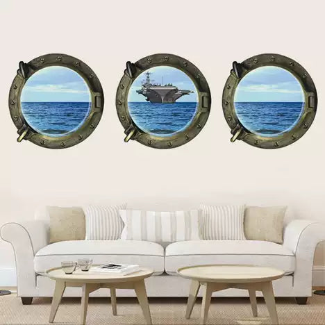 Aircraft Carrier Window View Murals Wall Decals Removable Wall Stickers Arts Wallpaper