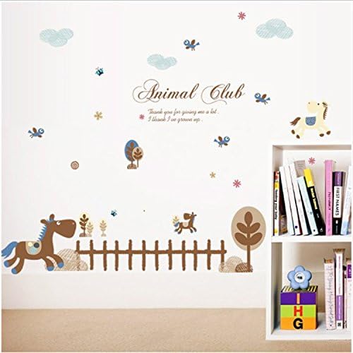 Share on WhatsApp MJ8010 Animal Club Happy Animals Wooden Horse Playground Peel and Stick Removable Vinyl Wall Stickers