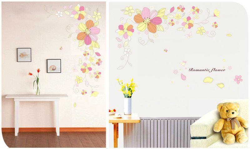 AY1924 romantisk blomma klistermärke, miljöskydd, högkvalitativ PVC transparent väggmallar.