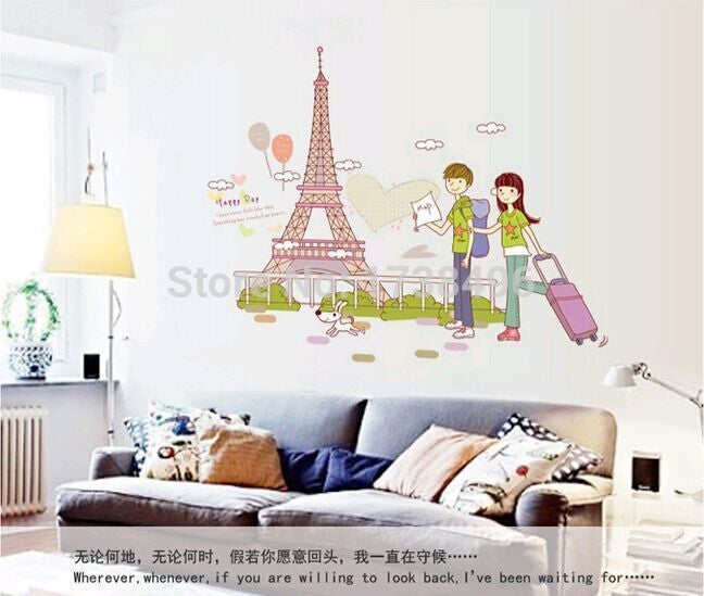AY7201: wallsticker/wall stiker transparan 50x70-EIFFEL N COUPLE