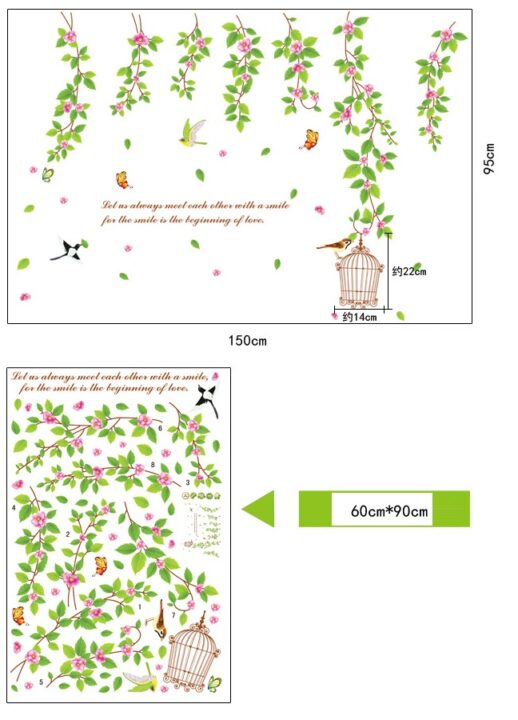 AY9084 Popular Vinyl Floral Hanging Branches With Bird Cage Wall Sticker Home Decal PVC Wall Decal Art Mural – Online Shopping Pakistan, Nail Art in Pakistan, Wall Stickers