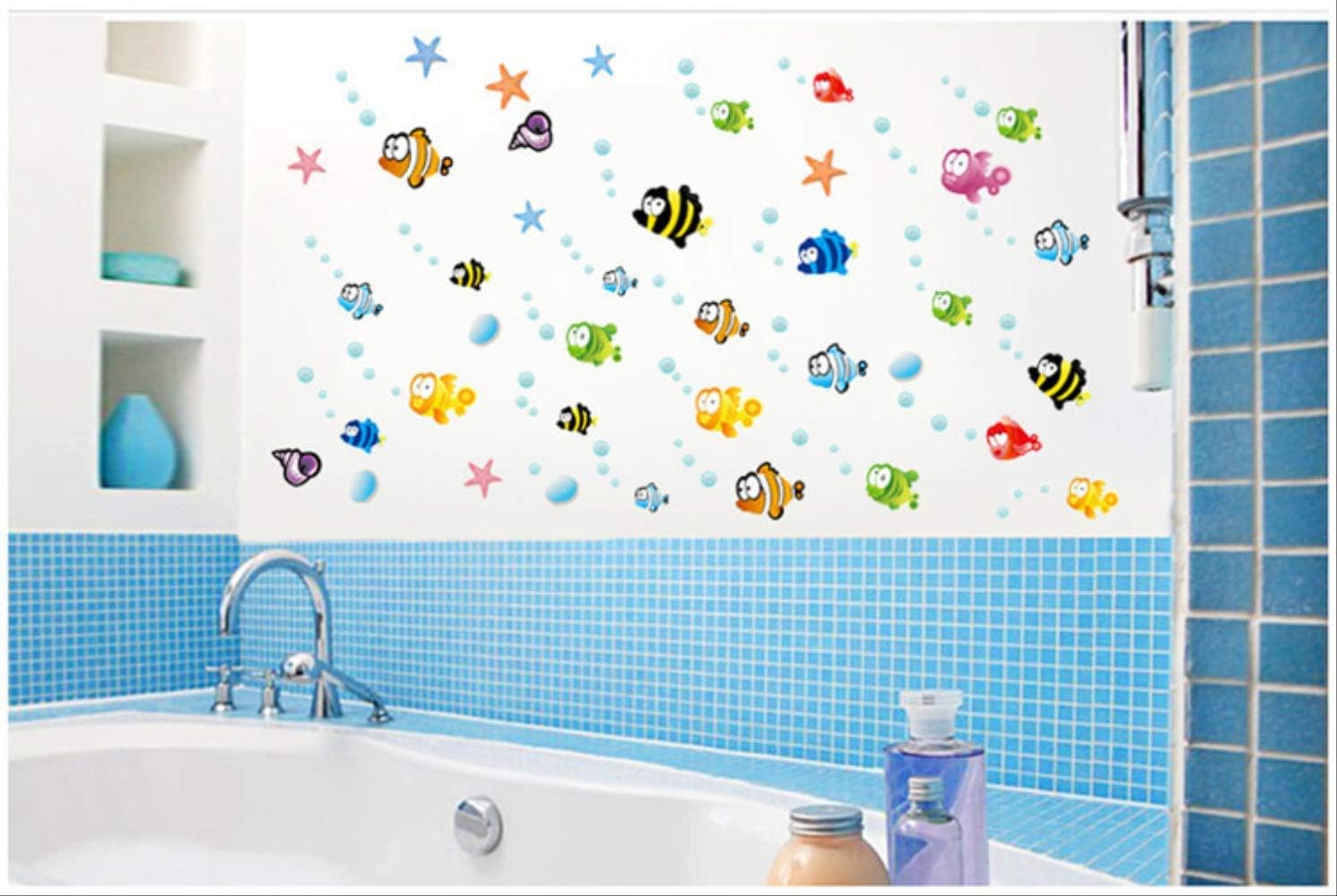 Bathroom Cartoon Wall Sticker Smudged Seaworld Swimming Pool Background Waterproof PVC Wall Sticker Am804 Halibut