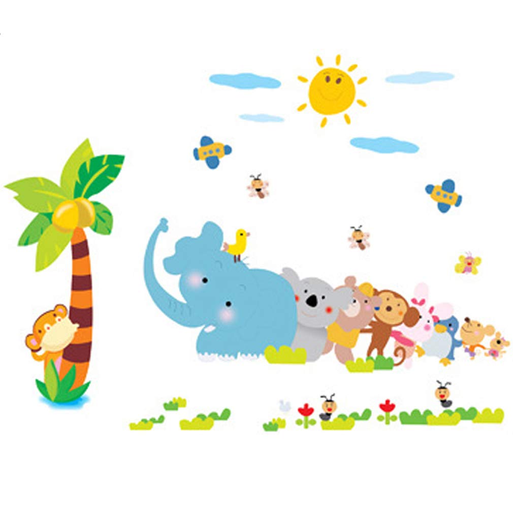beautybuy Baby Boy's Elephant Birds Coconut Tree Monkey Flower Animals Wall Decal Ay9161