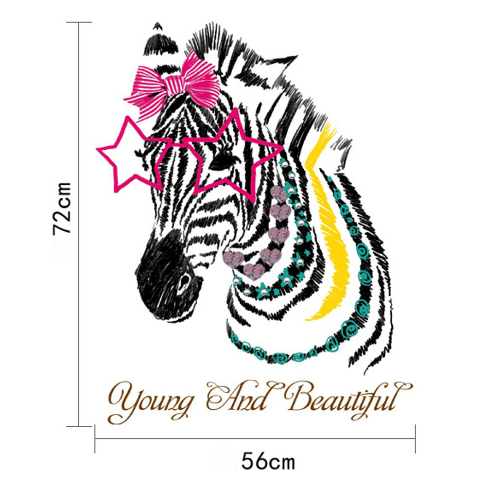 Butterflies Flowers Trees Wall Stickers Cartoon Animals Removable Wall Decals Home Decor Art Mural Baby Boys Girls Kids Bedroom Kitchen Room Decoration Wall Sticker (Beautiful Zebra)