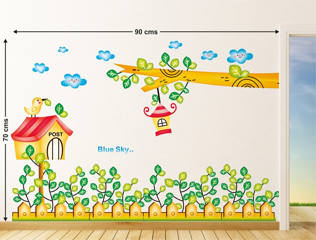 Share on WhatsApp Cartoon Plants Post and Branch with Hanging Lamp' Wall Sticker Decals Design (PVC Vinyl, ), Multicolour LD2033 Size: 50x70cm
