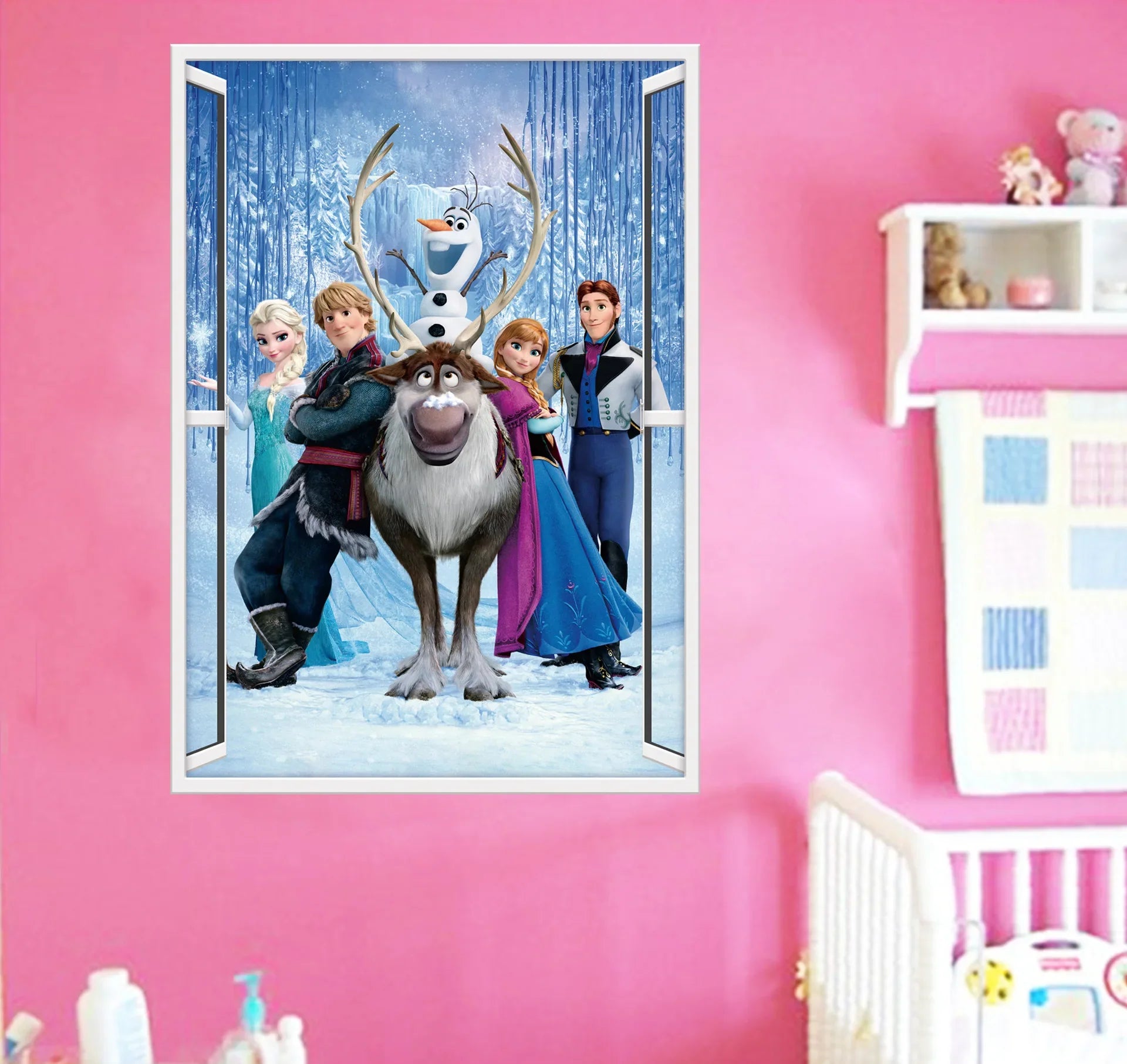 Cartoon Princess Elsa Anna Diy Frozen Wall Stickers Kids Rooms Background Decoration Removable Children Bedroom Poster Decor lm7023
