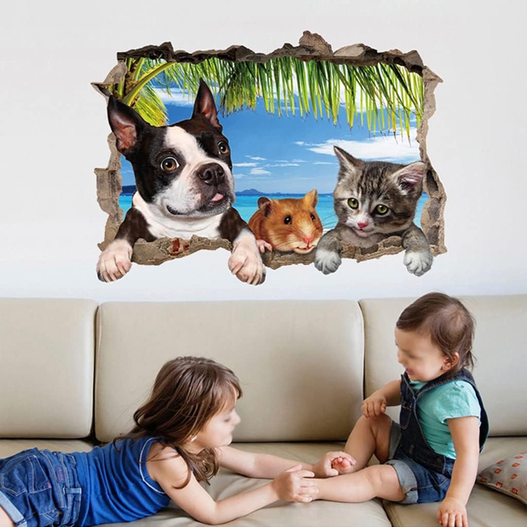 Share on WhatsApp Sk7150 Chinese Sticker Cute Cartoon Animal 3D Wall Stickers for Boys and Girls Bedroom, Creative Cat, Dog and Hamster Background Wall Decoration, Self-Adhesive Mural Stickers