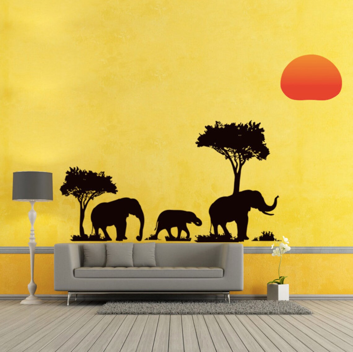 Elephants Family Tree Forest Sun Newest Creative Home Decal Wall Stickers