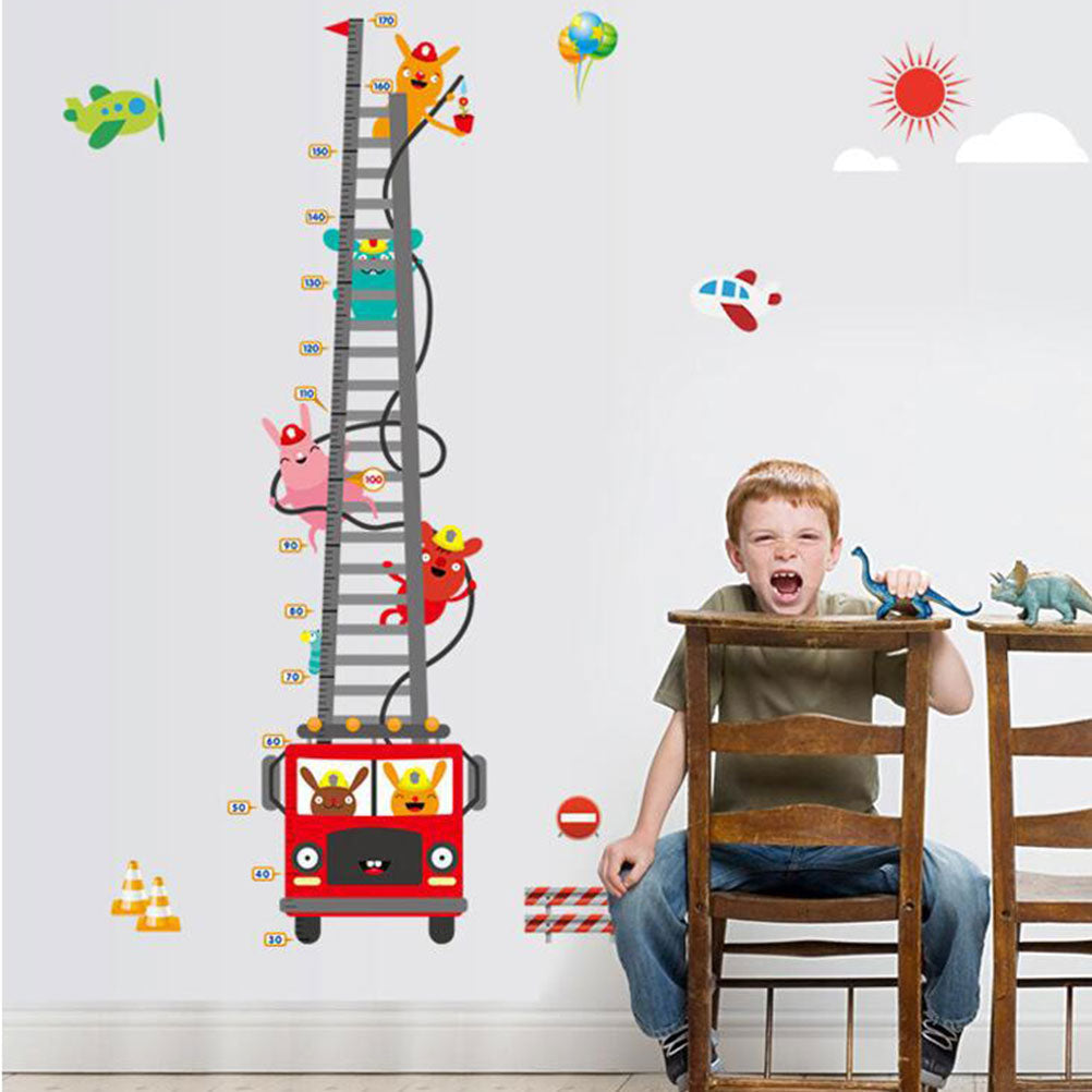 MJ8020 Fire Truck Wall Sticker Removable Height Sticker Cartoon Wall Decals Home Decor for Kids Room
