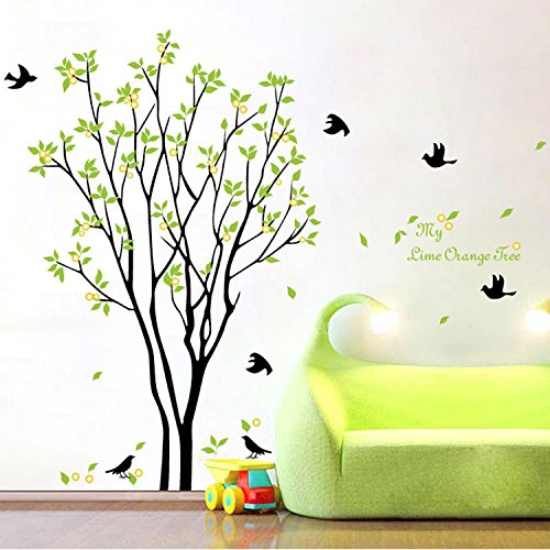 Share on WhatsApp Funif Tree and Bird Wall Sticker Decals DIY Removable Wall Mural Wallpaper for Home Decoration Green