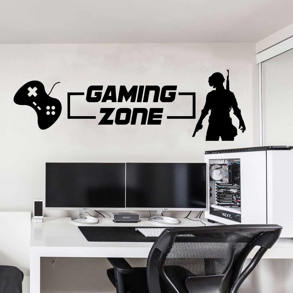 Share on WhatsApp Gaming Zone With Gaming Character With Gaming Console Video Game Wall Sticker Playroom Bedroom Gaming Zone Gamer Xbox Ps Quote Wall Decal Kids Room Vinyl Decor