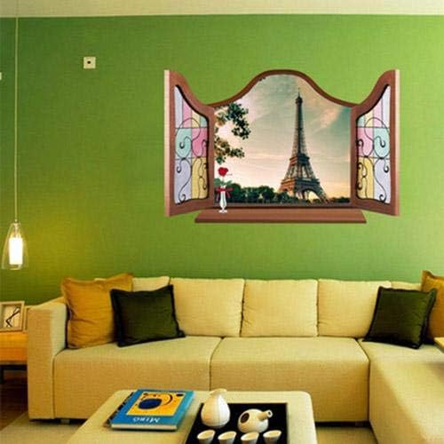 MJ8017cw Generic 3D Window Eiffel Tower Pattern PVC Wall Sticker Paper Mural Ornament 90 x 60cm