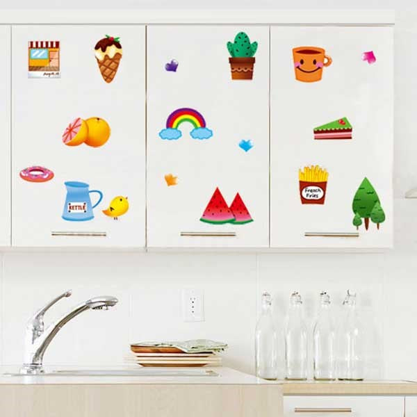 The decals are made of a high quality, waterproof, and durable vinyl. It will stick to any smooth surface such as walls, doors, glass, cabinets, appliances, etc. You can add your own unique style in minutes! This decal is a perfect gift for friends or family who enjoy decorating their homes. Imaginative art for you and won't damage your walls! Without much effort and cost you can decorate and style your home. Quick and easy to apply! Important: This wall sticker contains white edges around the patterns, white wall is required for the best results.