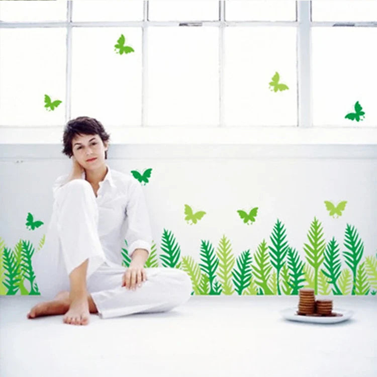 Green leaves and butterflies wall decals for beautiful wall and staircase decoration