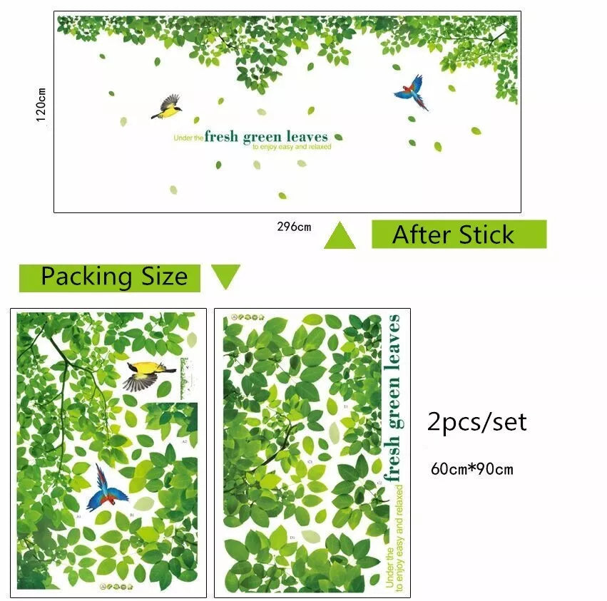 Green Leaves Wall Art Sticker Home Décor DIY Living Room Bedroom Wall Sticker Ay233b