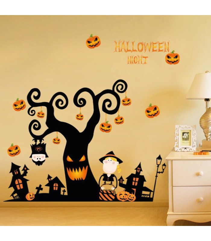 Share on WhatsApp Halloween pumpkin black tree wall sticker cartoon