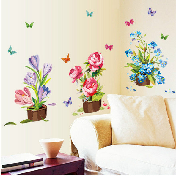 Ay7274 Hand-painted Potted Wall Sticker Flower Vinyl Stickers Wall Sticker For Kids Rooms Muurstickers Home Decor Bedroom Mural