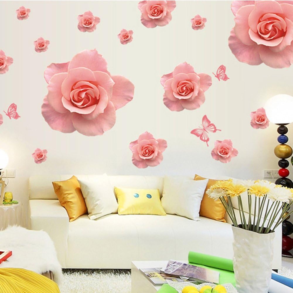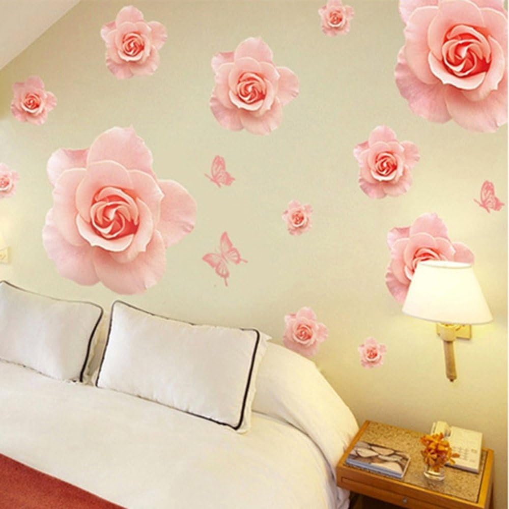 Lifeupmall Wall Decal Pink Rose Lily Daisy Magnolia Flower Romantic Vinyl Sticke Ay889