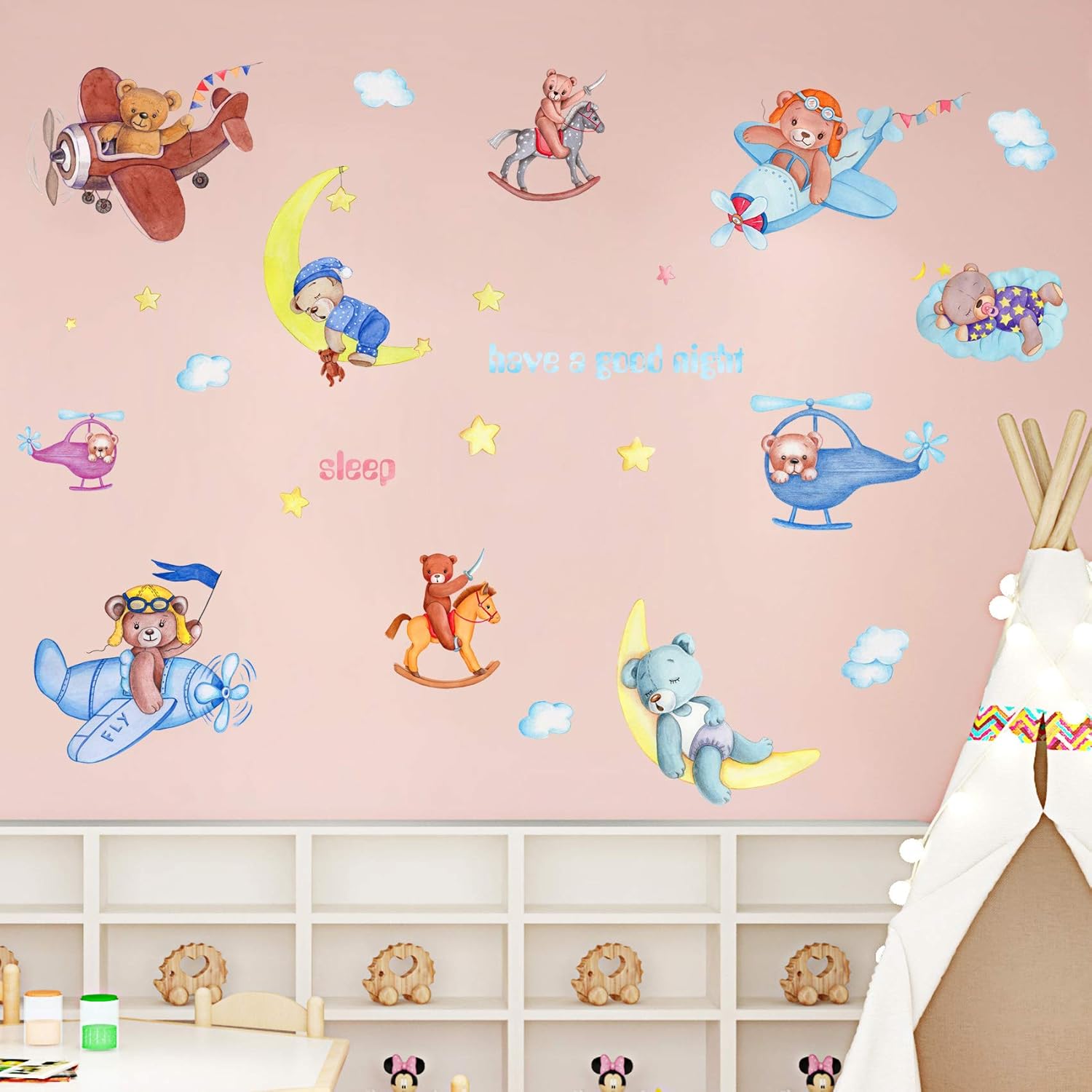 Share on WhatsApp METH HM71012 CUTE BEAR SLEEP N PLANE GOODNIGHT WALLSTICKER WALL STIKER