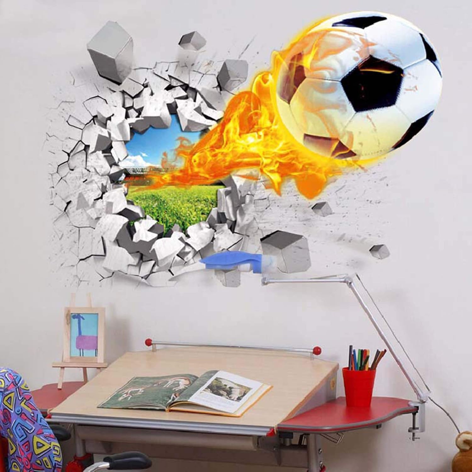Ncs1473 Lifeupmall 3D Wall Stickers Decorator Removable Break Through The Wall Vinyl Murals Art Decals Kid's Favor Basketball Football Soccer car for Nursery Kids Room Bedroom (Football)