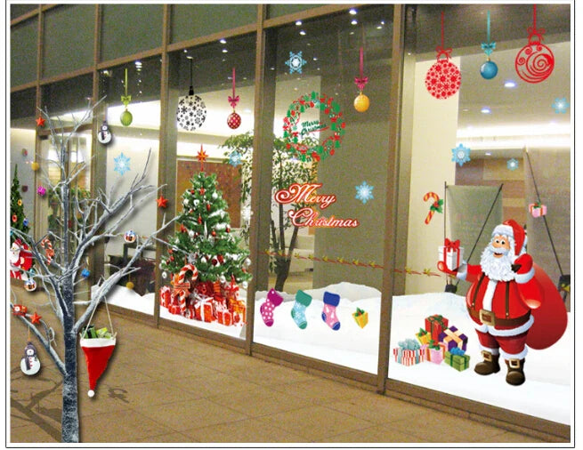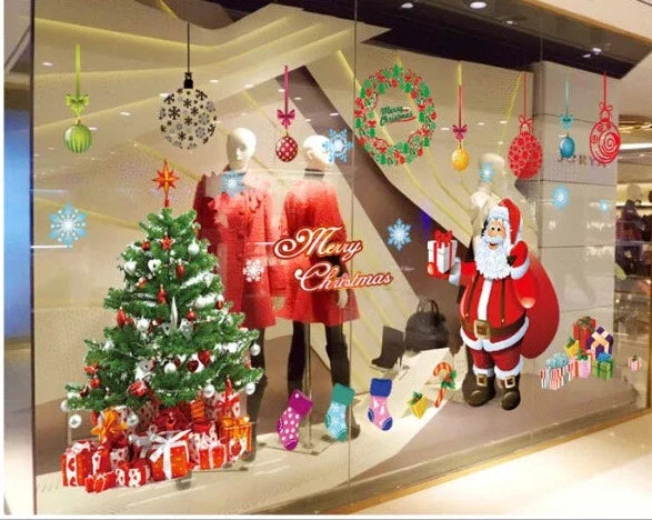 New Two large Large Hotel Der Bar Restaurant Christmas Art Wall Sticker Removable Decal Decor Christmas Tree Santa Claus Sticker -