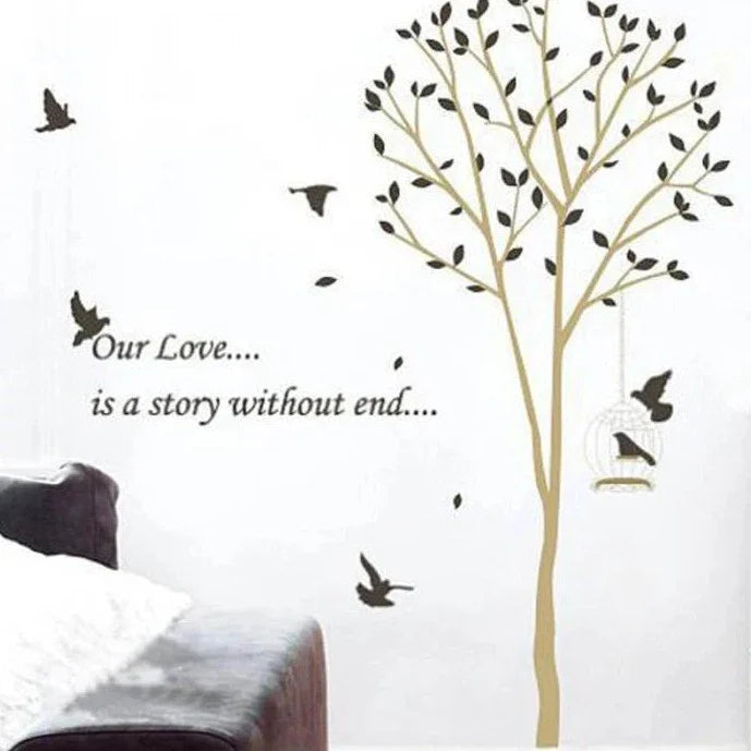 Share on WhatsApp OneHouse Our Love is A Story Without End Quote Tall Tree with Birds Wall Decal Leaves Wall Sticker Decor