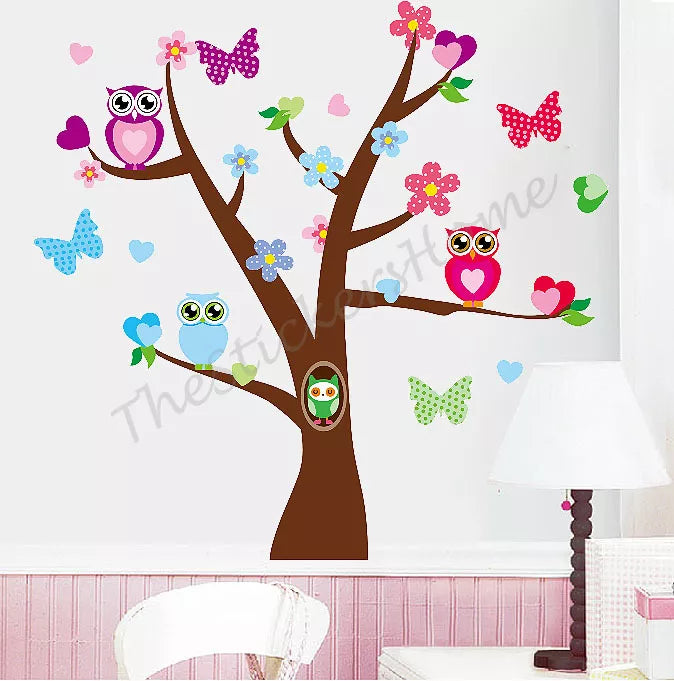 Owl Flower Butterfly Tree Wall Stickers Girls Bedroom Decor Kids Nursery Decals
