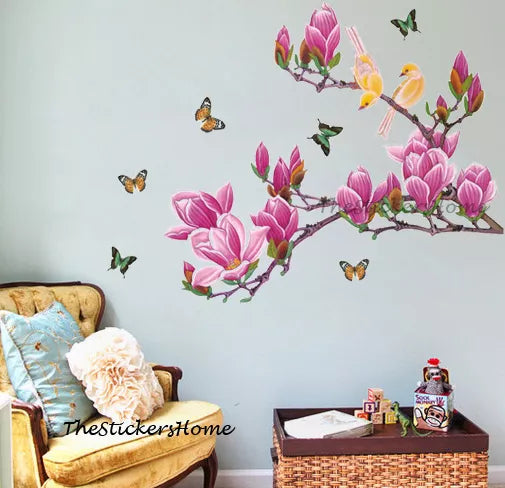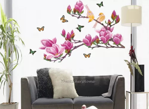 Share on WhatsApp Pink Magnolia Tree Flower Butterfly Wall Stickers Home Decor WallSticker ay1903