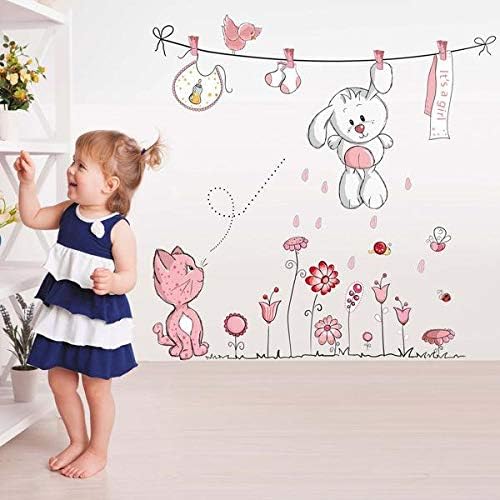 Pink Rabbit Animal Wall Stickers For Kids Rooms Children Baby Nursery Rooms Home Decor Living Room Vinyl Adhesive Wallpaper Bedroom Tile Decor