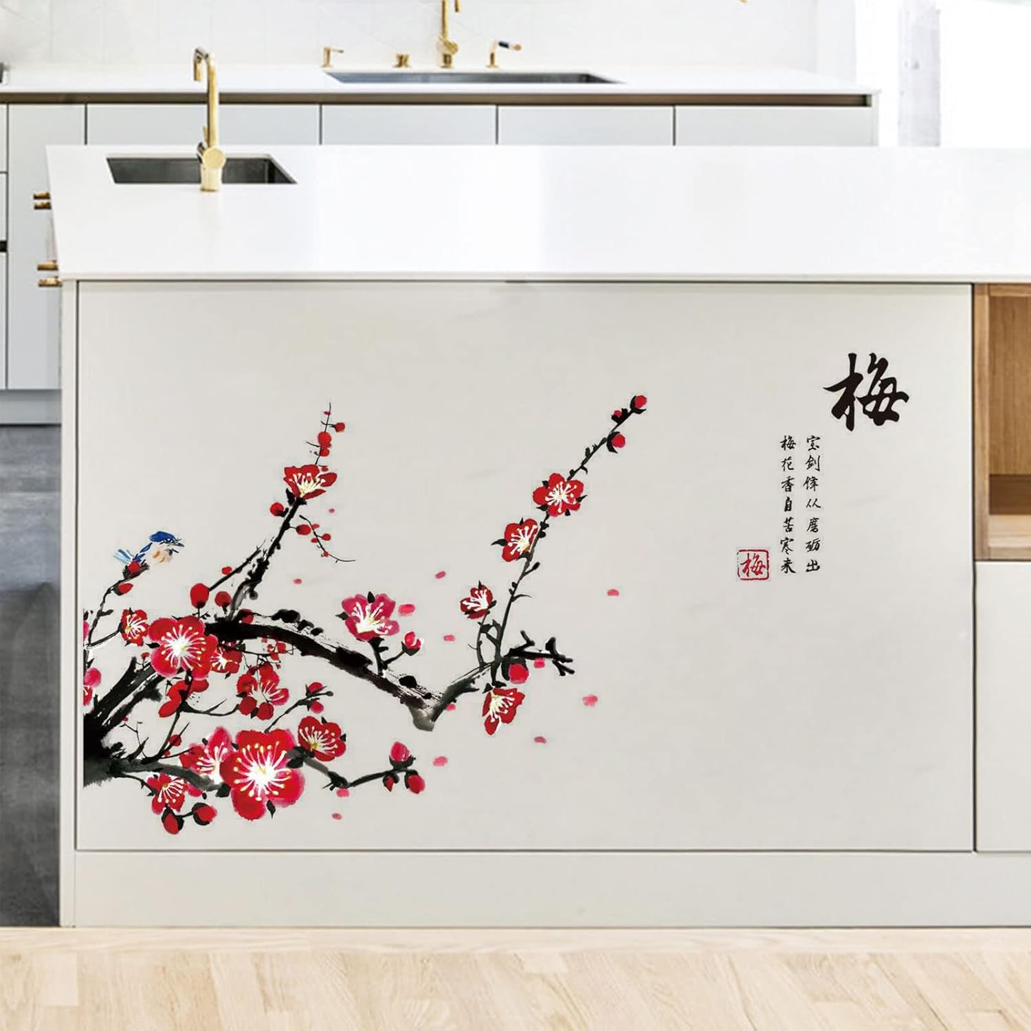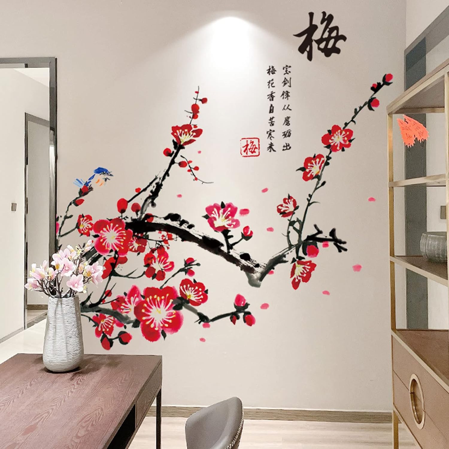 Share on WhatsApp Plum Blossom and Red Flower Tree DIY Removable Wall Sticker for Bedroom Living Room Office