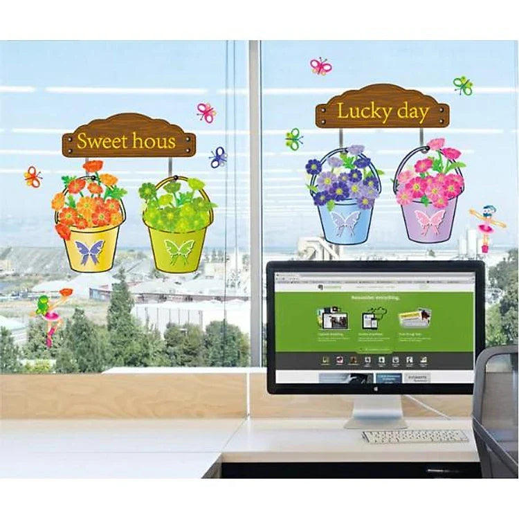 Share on WhatsApp Precioso jardín macetas maceta hojas mariposas pequeñas flores para pared casa papel adhesivo extraíble Living comedor wall sticker