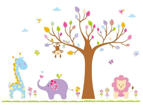- Features: Purple Elephant, Blue Giraffe, Pink Lion