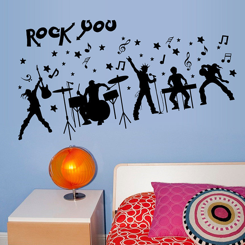 Rock Band Music Wall StickersTransparent Removable & ReusableTop Quality PVC StickersSuitable For Any Colour Walls & WindowsStickers Can Be Reapplied And Removed Without Damaging The Wall.Diy Removable Wall Stickers. Size 60cm X 90cmEasy To Apply, And Remove Without Leaving Any Sticky Residue.Adheres Straight To The Wall, Door, Mirror Or Any Smooth Surface.Become an interior decorator and transform your living space from ordinary to extraordinary with these unique wall stickers for kidsWith these stickers youll be sure to add plenty of color, depth, fun, and individuality apart from the average home.You can adorn the interior walls and windows of your home, bathroom, office, nursery, dorm, or store. Get creative and apply them to furniture,such as your refrigerator, table, desk, kitchen cabinets, drawers, etc. Theyre extremely easy and simple to use.Rock Band Music Wall Stickers from Wall Decals, Irelands largest range of kids wall stickers,