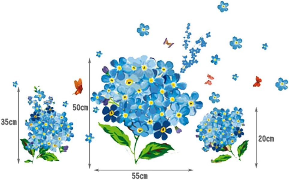 Romantic Blue Flowers Charm Wall Stickers Removable Wall Decals Home Decor PVC Art Mural Baby Boys Girls Kids Bedroom Kitchen Nursery Room Decoration Wall Sticker Posters