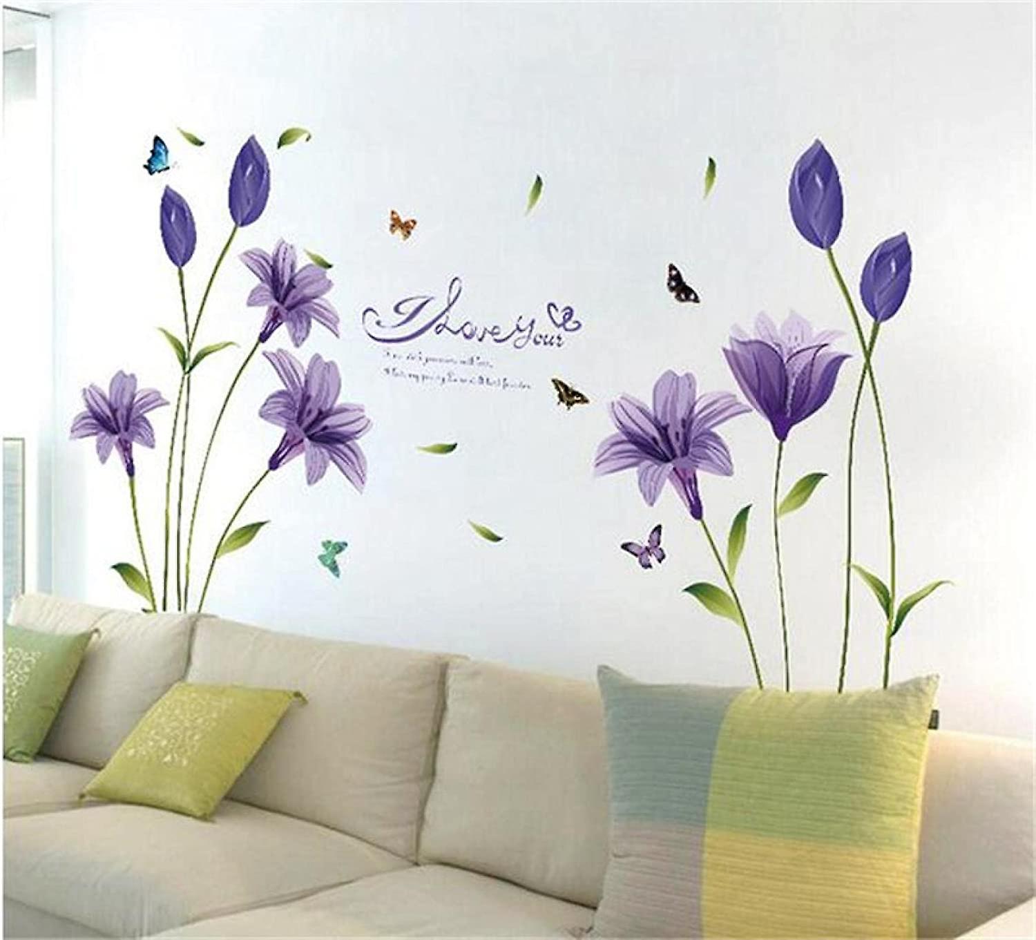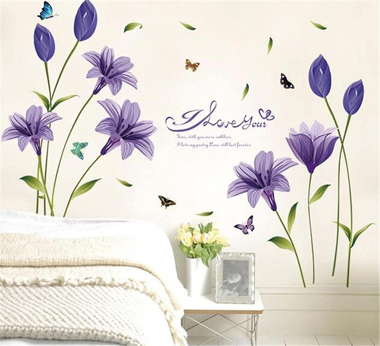 Romantic Lily Flower Butterfly Wall Sticker Living Room Bedroom Wall ay9242