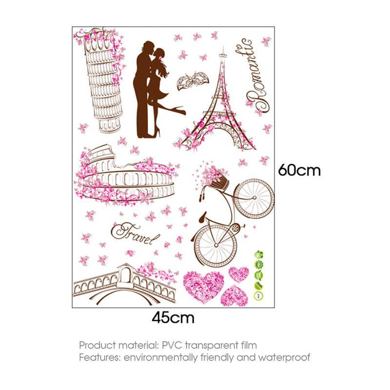Romantic Paris Love Wall Sticker Eiffel Tower Wall Paper For Home