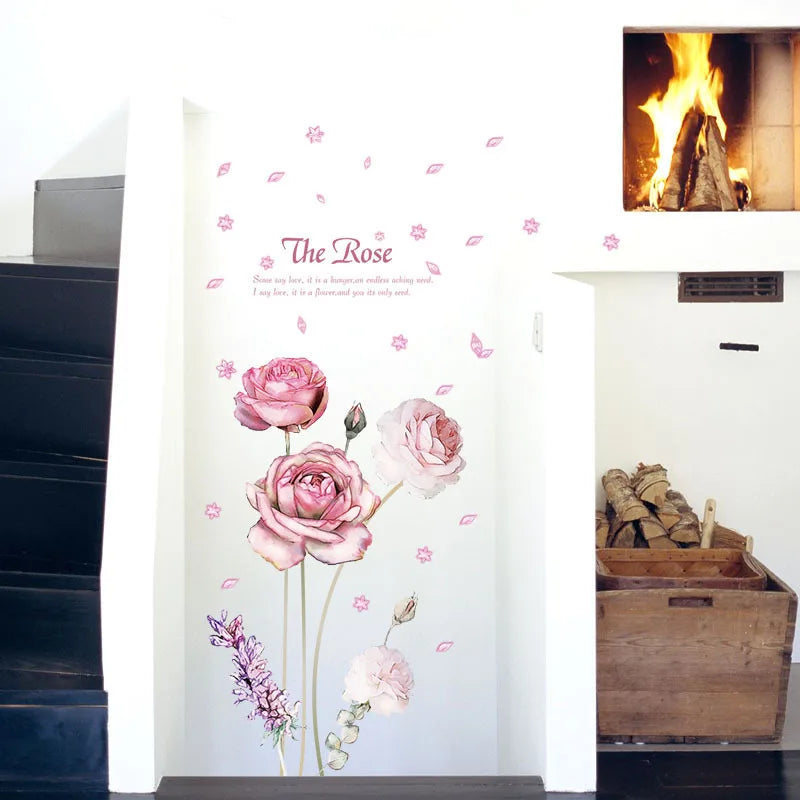 Rose Flowers Wall Art Decal Decoration Romantic Flower Wall Stickers Sk9281