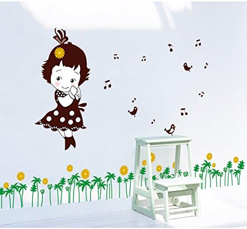 Share on WhatsApp Shy Girl Birds Singing Music Notes Flowers Green Leaves Wall Decal PVC Home Sticker House Vinyl Paper Decoration WallPaper Living Room Bedroom Kitchen Art Picture DIY Murals