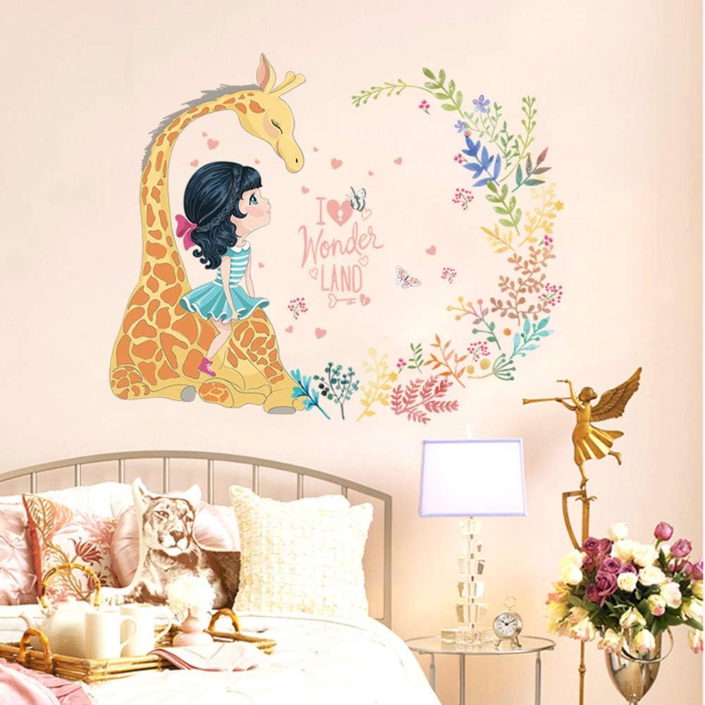 Share on WhatsApp Sk7101 Girl Giraffe Flowers Warm and Beautiful Painting Children's Room Kids Room Wall Decoration Bedroom Self-Adhesive Wall Stickers