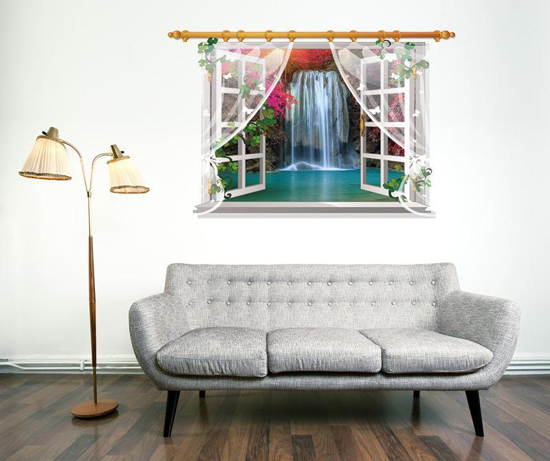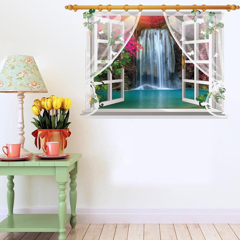 SK9020E 3D Wall stickers Waterfall Window Plant Landscape Home Decoration DIY Vinyl Decal Movie Mural Art