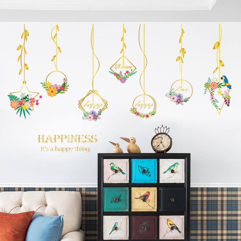 SK9351 Flower Hanging Basket Living Room Bedroom Background Decorative Wall Sticker