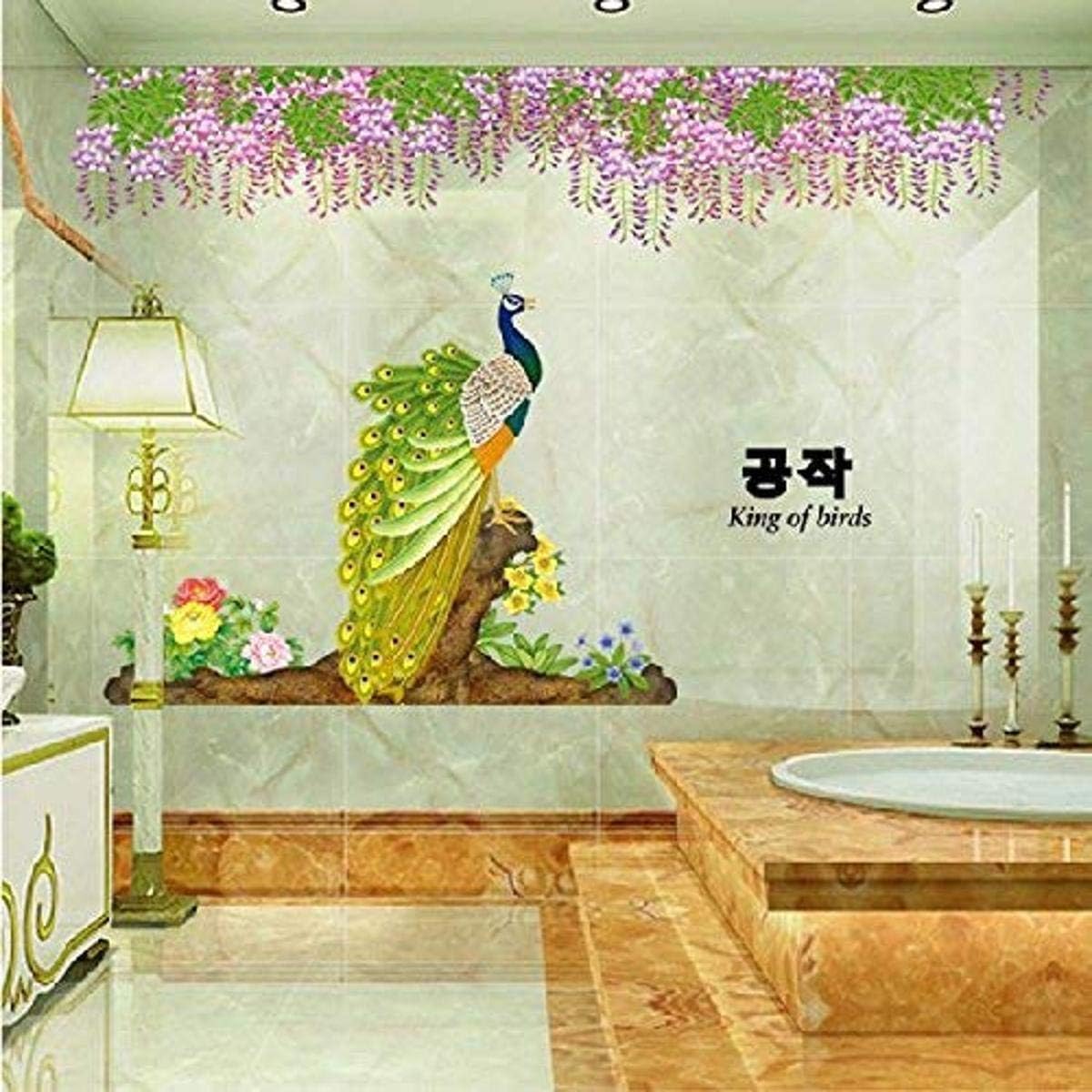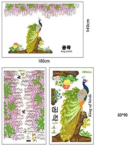 - Sticker fresh peacock and floral descent (140 x 180 cm) comes on two sheets in cardboard and plastifiées (pre-cut stickers). Size: 2 x (60 x 90 cm)