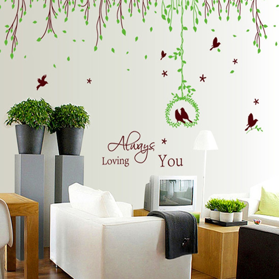 Wall Sticker English Letters Rural Green Leaves BirdsXy1059 xy
