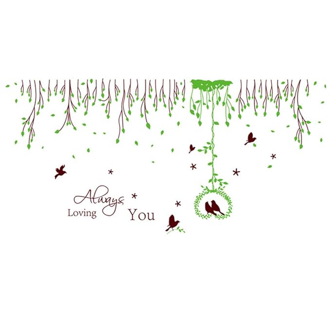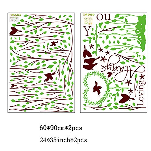 Share on WhatsApp Wall Sticker English Letters Rural Green Leaves Birds Paper Home Decal Removable Wall Vinyl Living Room Bedroom PVC Art Picture Murals DIY Stick for Adults Teens Kids Nursery Baby